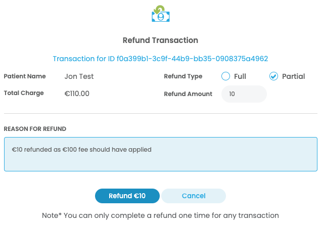 Until now, when a practice needed to complete a partial refund, you had the choice of either issuing a full refund and then charging the correct amount or reaching out to our support team to facilitate a partial refund. We know that neither of these solutions was ideal and promised we’d put in something to resolve this in our next update – thank you for sticking with us!