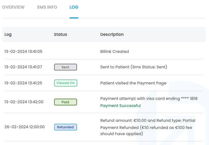 - Detailed Refund Log For full transparency, clicking on the ‘refunded’ status icon will reveal the refund log. This includes all details pertinent to the refund, such as the last four digits of the card used and the refunded amount.