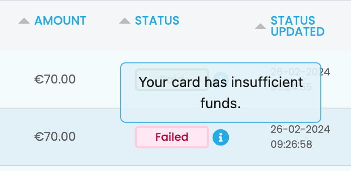 Perhaps the most valuable feature is our ability to elucidate failed payment attempts. We now provide reasons for failures, whether due to expired cards, invalid numbers, reports of lost cards, or insufficient funds. The failed icon is your gateway to the transaction logs, giving you a full narrative of the payment journey.