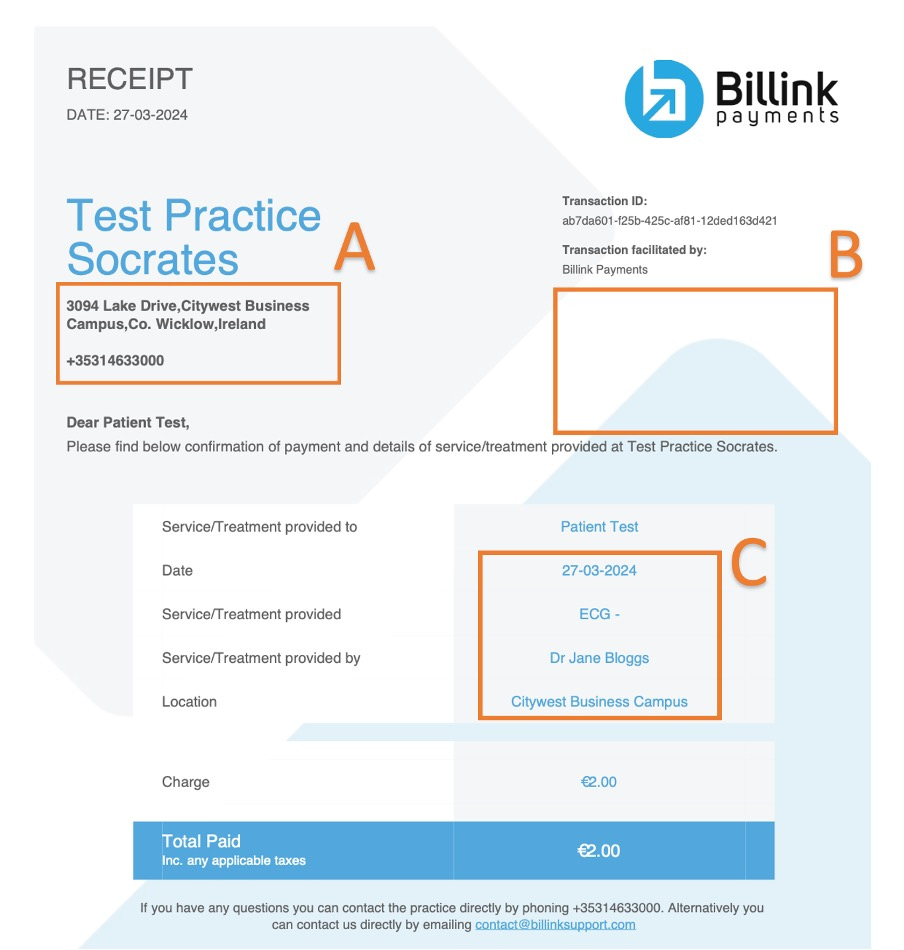 The first phase of our receipt customisation journey begins now. You can display additional information, like multiple location addresses or essential details for insurance purposes. While these changes are centrally managed, your feedback is invaluable—reach out to us for edits or to share your vision for future customisations. Sections A, B, and C are now editable – contact us directly if you’d like to change or display new information in these areas.