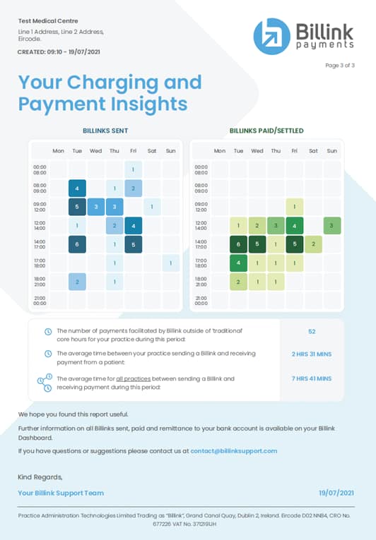 - Billinks Settled: The Billinks either manually or automatically marked as Settled from within your practice system by a member of your team