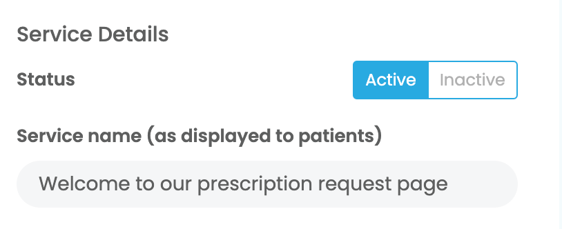 By default we have created a ‘prescription request’ service for all practices using Billink. We will take each section and explain what it does.